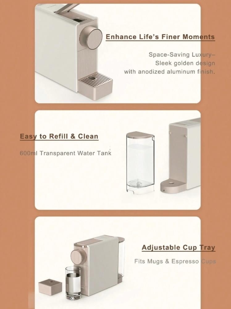 ماكينة قهوة كبسولات توفر لك تجربة قهوة سريعة وعالية الجودة باستخدام الكبسولات. مع تصميم مدمج وميزات متطورة مثل مضخة الضغط 19 بار، تساعدك هذه الآلة على تحضير قهوة غنية وكثيفة في كل مرة.